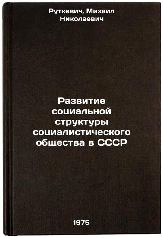In Russian. Rutkevich, Mikhail Nikolaevich. Development of the Social Structure of Socialist Society in the USSR. Moscow: 1975. Razvitie sotsial'noy struktury sotsialisticheskogo obshchestva v SSSR. In Russian /Development of the Social Structure of Socialist Society in the USSR. All images are for identification of editions only. Several books of the same edition may be available. Please feel free to request photos of available books. SKU6972787