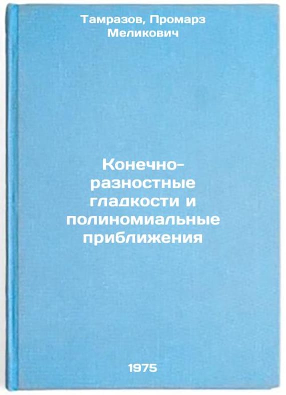 In Russian. Tamrazov, Promarz Melikovich. Of course-difference smoothness and polynomial approximations. Kyiv: 1975. Konechno-raznostnye gladkosti i polinomial'nye priblizheniya. In Russian /Of course-difference smoothness and polynomial approximations. All images are for identification of editions only. Several books of the same edition may be available. Please feel free to request photos of available books. SKU6973777