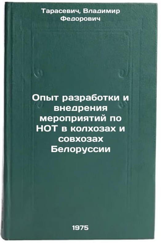 In Russian. Tarasevich, Vladimir Fedorovich. Experience in the development and implementation of NOT measures in Belarusian collective farms and state farms. Minsk: 1975. Opyt razrabotki i vnedreniya meropriyatiy po NOT v kolkhozakh i sovkhozakh Belorussii. In Russian /Experience in the development and implementation of NOT measures on collective and state farms in Belarus. All images are for identification of editions only. Several books of the same edition may be available. Please feel free to request photos of available books. SKU6974923