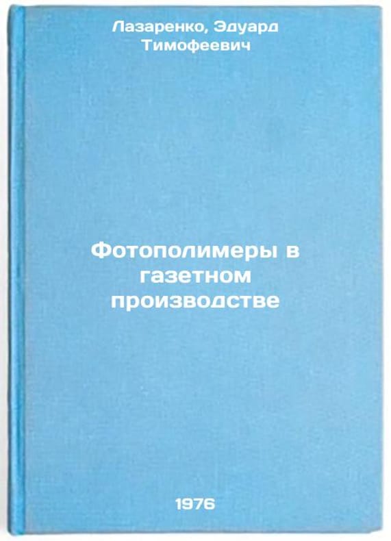 In Russian. Lazarenko, Eduard Timofeevich. Photopolymers in Newspaper Production. Moscow: Book, 1976. Fotopolimery v gazetnom proizvodstve. In Russian /Photopolymers in Newspaper Production . All images are for identification of editions only. Several books of the same edition may be available. Please feel free to request photos of available books. SKU6975954