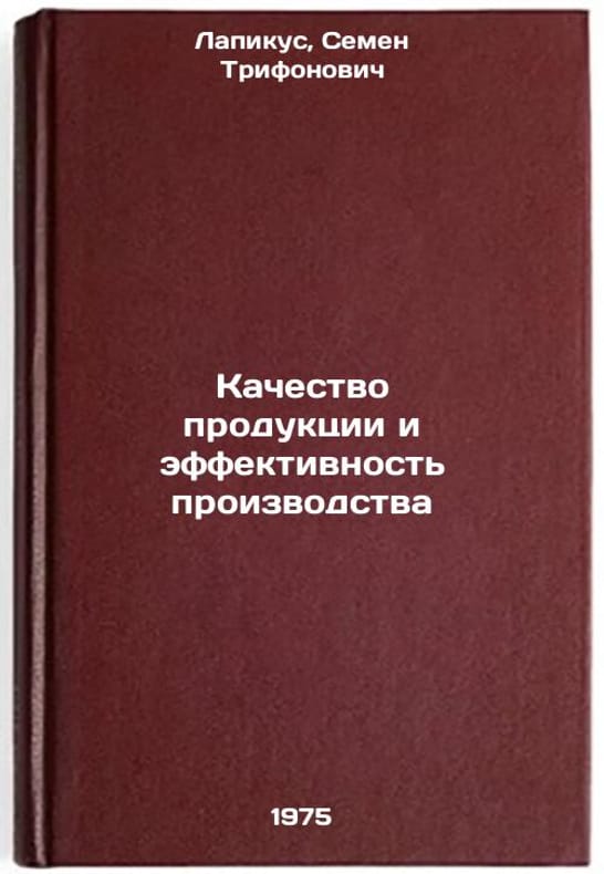 In Russian. Lapikus, Semyon Trifonovich. Product quality and production efficiency. Chisinau: 1975. All images are for identification of editions only. Several books of the same edition may be available. Please feel free to request photos of available books.SKU6976163