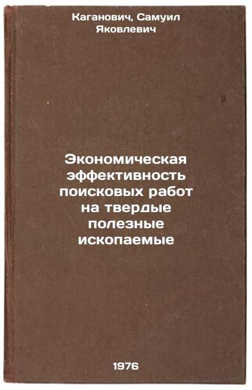 In Russian. Kaganovich, Samuil Yakovlevich. Economic Efficiency of Prospecting for Solid Minerals. Moscow: VIEMS, 1976. Ekonomicheskaya effektivnost' poiskovykh rabot na tverdye poleznye iskopaemye. In Russian /Economic Efficiency of Solid Mineral Prospecting . All images are for identification of editions only. Several books of the same edition may be available. Please feel free to request photos of available books. SKU6976287