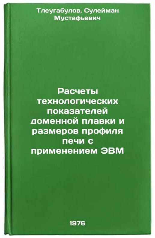 In Russian. Tleugabulov, Suleiman Mustafyevich. Calculation of technological indices of blast furnace smelting and furnace profile dimensions using computers. Almaty: MV and MSS of the Kazakh SSR, 1976. Raschety tekhnologicheskikh pokazateley domennoy plavki i razmerov profilya pechi s primeneniem EVM. In Russian /Computer calculations of blast furnace smelting and furnace profile . All images are for identification of editions only. Several books of the same edition may be available. Please feel free to request photos of available books. SKU6978710