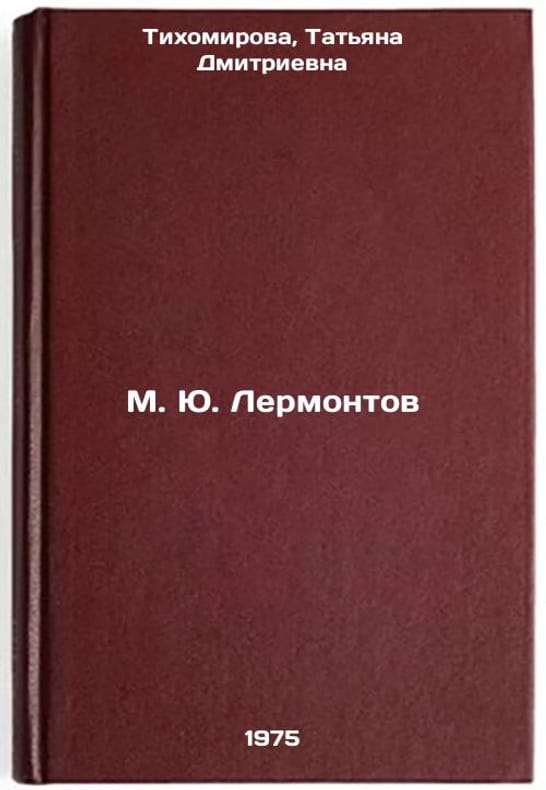 In Russian. Tikhomirova, Tatyana Dmitrievna. M. Yu. Lermontov. Moscow: 1975. All images are for identification of editions only. Several books of the same edition may be available. Please feel free to request photos of available books. SKU6978929