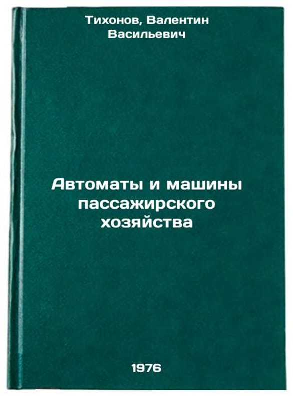 In Russian. Tikhonov, Valentin Vasilievich. Automats and passenger economy machines. Moscow: Transport, 1976. Avtomaty i mashiny passazhirskogo khozyaystva. In Russian /Automats and passenger machinery . All images are for identification of editions only. Several books of the same edition may be available. Please feel free to request photos of available books. SKU6978948