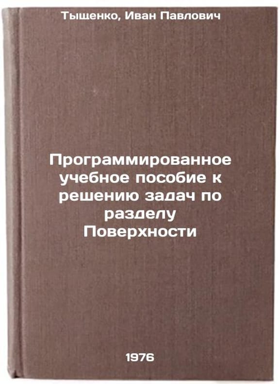 In Russian. Tyshchenko, Ivan Pavlovich. Programmable tutorial for solving problems in the Surfaces section. Taganrog: 1976. Programmirovannoe uchebnoe posobie k resheniyu zadach po razdelu Poverkhnosti. In Russian /Programmable tutorial for solving Surface problems . All images are for identification of editions only. Several books of the same edition may be available. Please feel free to request photos of available books. SKU6979691