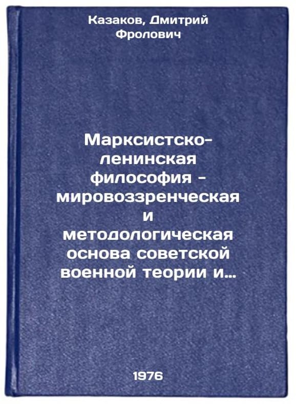 In Russian. Kazakov, Dmitry Frolovich. Marxist-Leninist philosophy - the worldview and methodological basis of Soviet military theory and practice. Moscow: 1976. Marksistsko-leninskaya filosofiya - mirovozzrencheskaya i metodologicheskaya osnova sovetskoy voennoy teorii i praktiki. In Russian /Marxist-Leninist philosophy - the worldview and methodological basis of Soviet military theory and practice . All images are for identification of editions only. Several books of the same edition may be available. Please feel free to request photos of available books. SKU6980165
