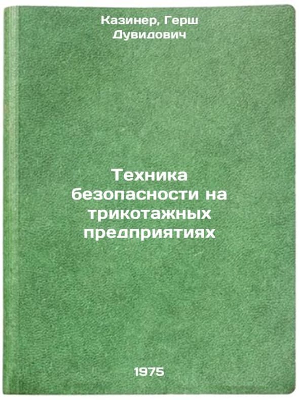 In Russian. Kaziner, Gersh Duvidovich. Safety Techniques at Knitwear Plants. Moscow: Leg Industry, 1975. Tekhnika bezopasnosti na trikotazhnykh predpriyatiyakh. In Russian /Safety in knitwear factories. All images are for identification of editions only. Several books of the same edition may be available. Please feel free to request photos of available books. SKU6980333