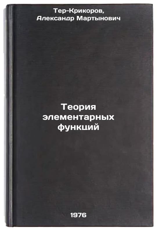 In Russian. Ter-Krikorov, Alexander Martynovich. The Theory of Elementary Functions. Moscow: 1976. All images are for identification of editions only. Several books of the same edition may be available. Please feel free to request photos of available books. SKU6980741
