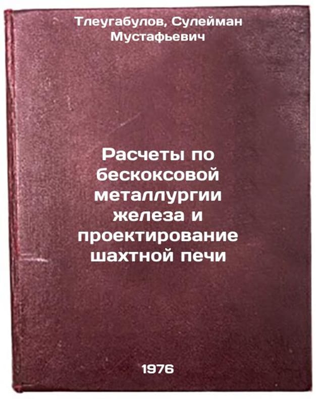 In Russian. Tleugabulov, Suleiman Mustafyevich. Calculations for the boneless metallurgy of iron and mine furnace design. Almaty: 1976. Raschety po beskoksovoy metallurgii zheleza i proektirovanie shakhtnoy pechi. In Russian /Iron boneless metallurgy calculations and mine kiln design . All images are for identification of editions only. Several books of the same edition may be available. Please feel free to request photos of available books. SKU6980881