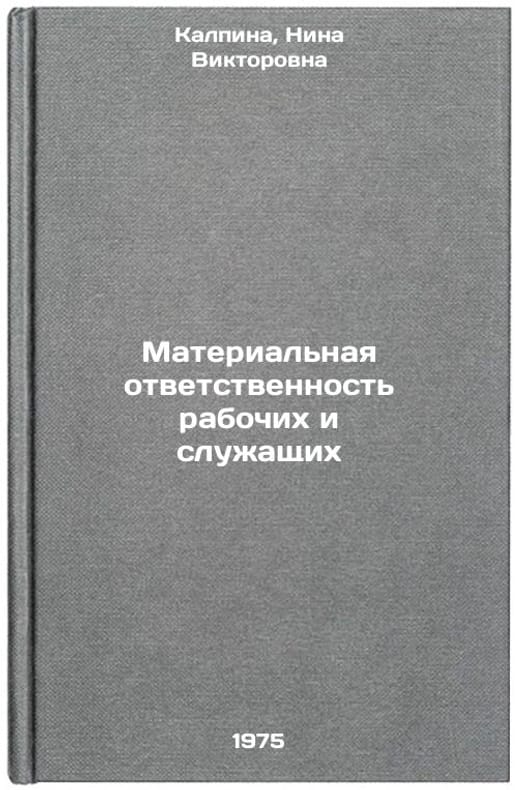 In Russian. Kalpina, Nina Viktorovna. Material Responsibility of Workers and Employees. Kuibyshev: Kuibyshev. Material'naya otvetstvennost' rabochikh i sluzhashchikh. In Russian /Material Responsibility of Workers and Employees. All images are for identification of editions only. Several books of the same edition may be available. Please feel free to request photos of available books. SKU6981622