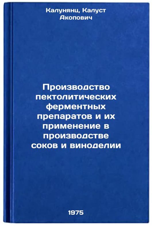 In Russian. Kalunyants, Kalust Akopovich. Production of pectolytic enzymes and their application in juice and wine production. Moscow: ONTITEImicrobiome, 1975. Proizvodstvo pektoliticheskikh fermentnykh preparatov i ikh primenenie v proizvodstve sokov i vinodelii. In Russian /Production of pectolytic enzymes and their application in juice and wine production. All images are for identification of editions only. Several books of the same edition may be available. Please feel free to request photos of available books. SKU6981636