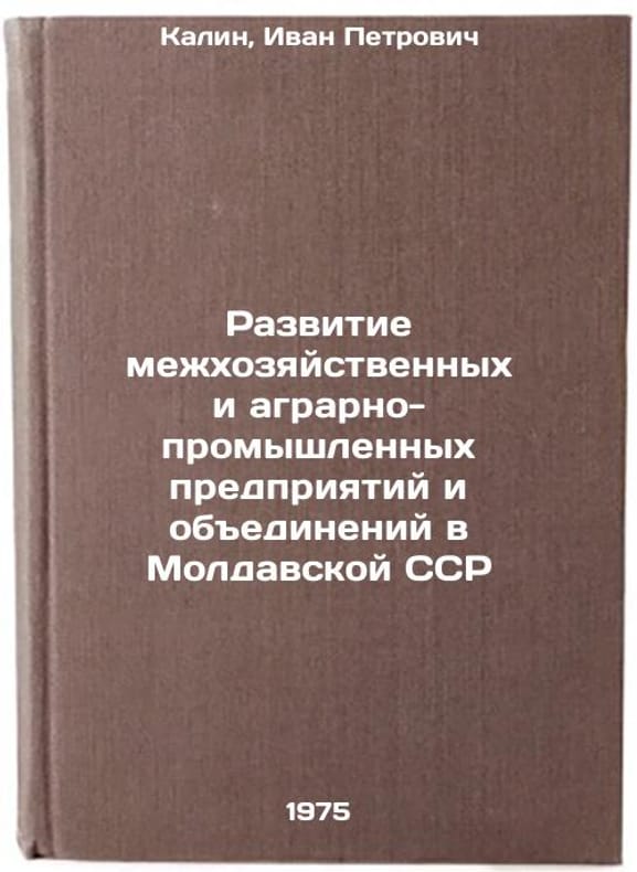 In Russian. Kalin, Ivan Petrovich. Development of intereconomic and agro-industrial enterprises and associations in the Moldavian SSR. Moscow: High School of Economics, 1975. Razvitie mezhkhozyaystvennykh i agrarno-promyshlennykh predpriyatiy i obedineniy v Moldavskoy SSR. In Russian /Development of intereconomic and agro-industrial enterprises and associations in the Moldovan SSR. All images are for identification of editions only. Several books of the same edition may be available. Please feel free to request photos of available books. SKU6981755