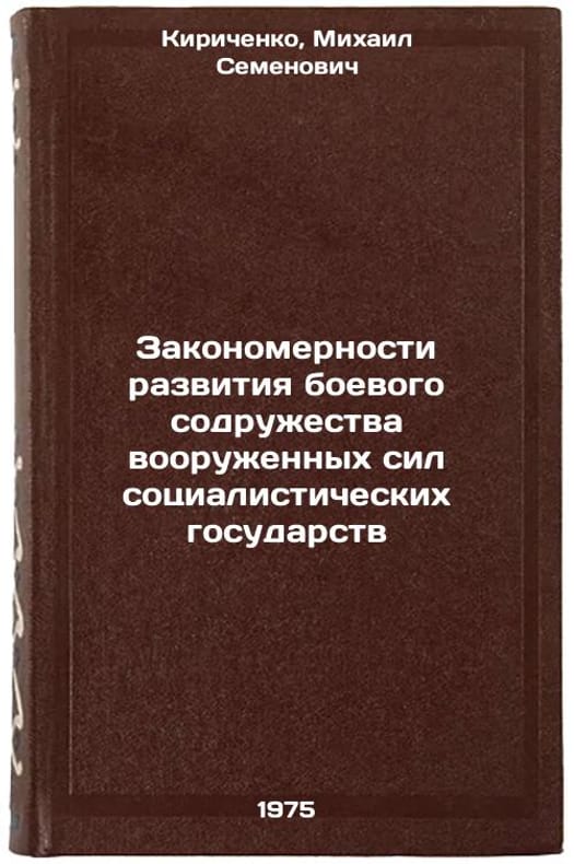 In Russian. Kirichenko, Mikhail Semenovich. The Laws of the Development of the Combat Community of the Armed Forces of Socialist States. Minsk: 1975. Zakonomernosti razvitiya boevogo sodruzhestva vooruzhennykh sil sotsialisticheskikh gosudarstv. In Russian /Procedures for the development of a combat alliance of the armed forces of socialist states. All images are for identification of editions only. Several books of the same edition may be available. Please feel free to request photos of available books. SKU6984677