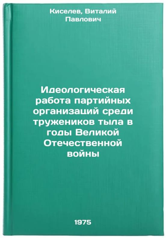 In Russian. Kiselev, Vitaly Pavlovich. The ideological work of Party organizations among the workers of the home front during the Great Patriotic War. Gorky: Volga-Vyat. book-edition, 1975. Ideologicheskaya rabota partiynykh organizatsiy sredi truzhenikov tyla v gody Velikoy Otechestvennoy voyny. In Russian /Ideological work of Party organizations among home front workers during the Great Patriotic War. All images are for identification of editions only. Several books of the same edition may be available. Please feel free to request photos of available books. SKU6984762