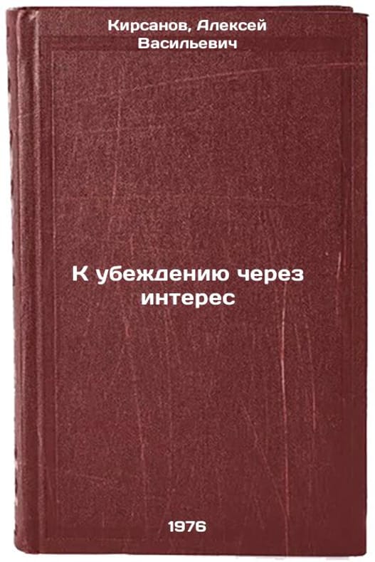 In Russian. Kirsanov, Alexey Vasilievich. To Persuasion through Interest. Moscow: Moscow Worker, 1976. All images are for identification of editions only. Several books of the same edition may be available. Please feel free to request photos of available books. SKU6984920