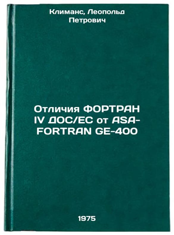 In Russian. Klimans, Leopold Petrovich. Differences between FORTRAN IV DOS / EU and ASA-FORTRAN GE-400. Riga: Latvian State University, 1975. Otlichiya FORTRAN IV DOS, ES ot ASA-FORTRAN GE-400. In Russian /Differences between DOS, EU FORTRAN IV and ASA-FORTRAN GE-400. All images are for identification of editions only. Several books of the same edition may be available. Please feel free to request photos of available books. SKU6984981