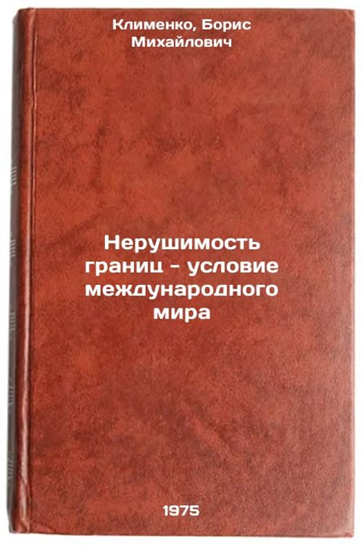 In Russian. Klimenko, Boris Mikhailovich. The inviolability of borders is a condition for international peace. Moscow: Science, 1975. Nerushimost' granits - uslovie mezhdunarodnogo mira. In Russian /The inviolability of borders is a condition for international peace. All images are for identification of editions only. Several books of the same edition may be available. Please feel free to request photos of available books. SKU6985001