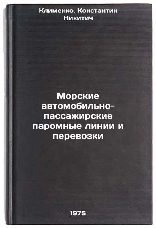 In Russian. Klimenko, Konstantin Nikitich. Marine car-passenger ferry lines and transportation. Moscow: CBSTI MMF, 1975. Morskie avtomobil'no-passazhirskie paromnye linii i perevozki. In Russian /Maritime road-passenger ferry lines and transport. All images are for identification of editions only. Several books of the same edition may be available. Please feel free to request photos of available books. SKU6985010