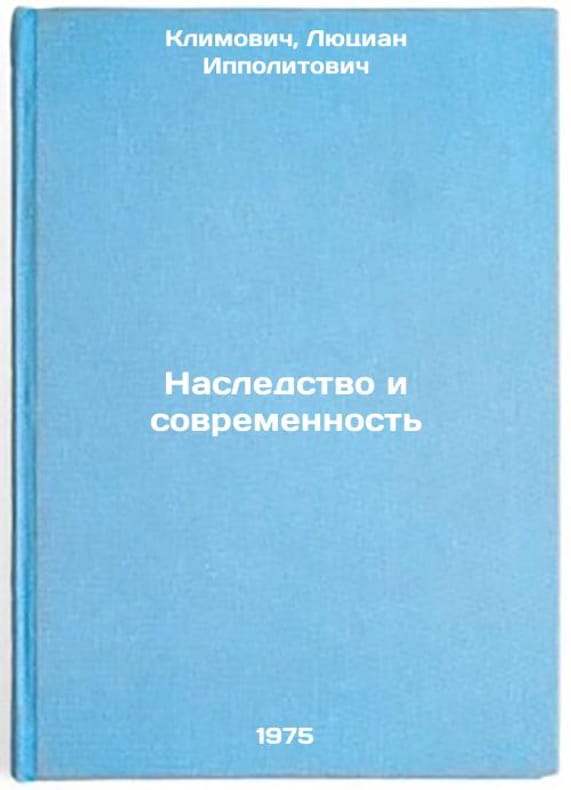 In Russian. Klimovich, Lucian Ippolitovich. Heritage and modernity. Moscow: Soviet writer, 1975. All images are for identification of editions only. Several books of the same edition may be available. Please feel free to request photos of available books. SKU6985067