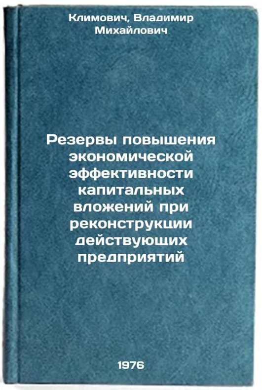 In Russian. Klimovich, Vladimir Mikhailovich. Reserves for improving the economic efficiency of capital investments during the reconstruction of existing enterprises. Minsk: BelNIINTI, 1976. Rezervy povysheniya ekonomicheskoy effektivnosti kapital'nykh vlozheniy pri rekonstruktsii deystvuyushchikh predpriyatiy. In Russian /Capital Efficiency Reserves for Reconstruction of Existing Enterprises . All images are for identification of editions only. Several books of the same edition may be available. Please feel free to request photos of available books. SKU6985188