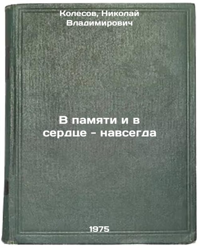In Russian. Kolesov, Nikolai Vladimirovich. In Memory and in Heart - Forever. Moscow: Politizdat, 1975. All images are for identification of editions only. Several books of the same edition may be available. Please feel free to request photos of available books. SKU6986412
