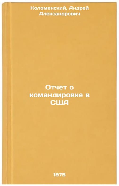 In Russian. Kolomensky, Andrey Alexandrovich. Report on a mission to the USA. Moscow: 1975. Otchet o komandirovke v SShA. In Russian /Report on a mission to the United States. All images are for identification of editions only. Several books of the same edition may be available. Please feel free to request photos of available books. SKU6986490