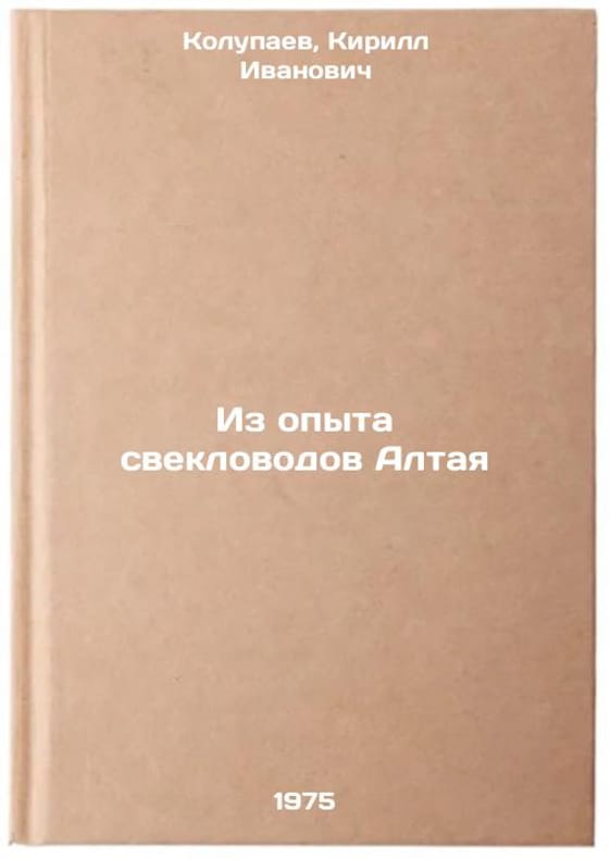 In Russian. Kolupaev, Kirill Ivanovich. From the experience of beet farmers in Altai. Barnaul: Altai Book Publishing House, 1975. Iz opyta sveklovodov Altaya. In Russian /From the experience of beet growers in Altai. All images are for identification of editions only. Several books of the same edition may be available. Please feel free to request photos of available books. SKU6986581