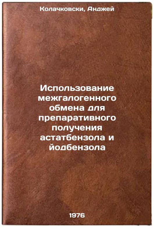 In Russian. Kolaczkowski, Andrzej. The use of interhalogen exchange for the preparation of astatbenzene and iodbenzene. Ispol'zovanie mezhgalogennogo obmena dlya preparativnogo polucheniya astatbenzola i yodbenzola. In Russian /Use of interhalogen exchange for the formulation of astatbenzene and iodbenzene . All images are for identification of editions only. Several books of the same edition may be available. Please feel free to request photos of available books. SKU6989143