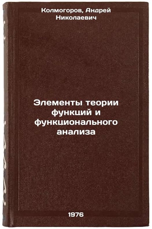 In Russian. Kolmogorov, Andrey Nikolaevich. Elements of Function Theory and Functional Analysis. Moscow: Science, 1976. Elementy teorii funktsiy i funktsional'nogo analiza. In Russian /Elements of Function Theory and Functional Analysis . All images are for identification of editions only. Several books of the same edition may be available. Please feel free to request photos of available books. SKU6989230