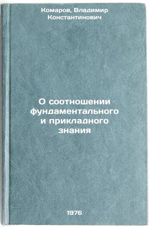In Russian. Komarov, Vladimir Konstantinovich. On the relationship between fundamental and applied knowledge. Volgograd: Nizhniy-Volzhniy Book Publishing House, 1976. O sootnoshenii fundamental'nogo i prikladnogo znaniya. In Russian /On the relationship between fundamental and applied knowledge . All images are for identification of editions only. Several books of the same edition may be available. Please feel free to request photos of available books. SKU6989385