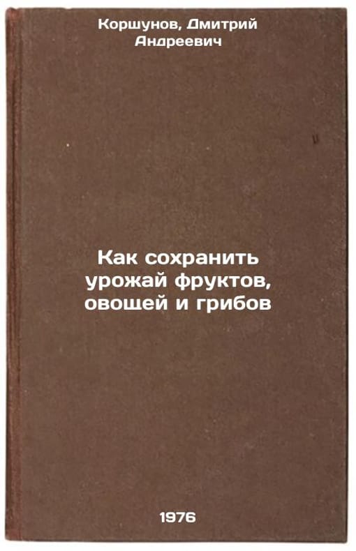 In Russian. Korshunov, Dmitry Andreevich. How to Save the Harvest of Fruit, Vegetables and Mushrooms. Moscow: Food Industry, 1976. Kak sokhranit' urozhay fruktov, ovoshchey i gribov. In Russian /How to Save the Harvest of Fruit, Vegetables and Mushrooms . All images are for identification of editions only. Several books of the same edition may be available. Please feel free to request photos of available books. SKU6989598