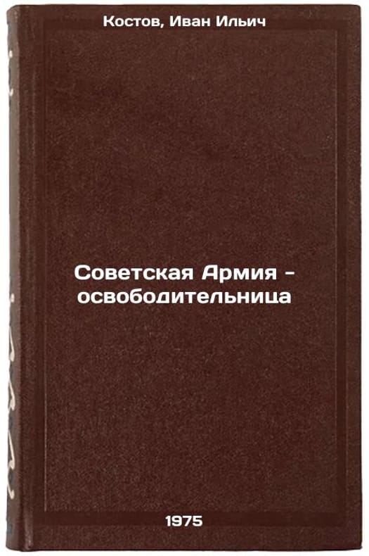 In Russian. Kostov, Ivan Ilyich. The Soviet Army is a Liberator. Almaty: The Knowledge of the KazSSR, 1975. Sovetskaya Armiya - osvoboditel'nitsa. In Russian /The Soviet Army is a Liberator. All images are for identification of editions only. Several books of the same edition may be available. Please feel free to request photos of available books. SKU6989712