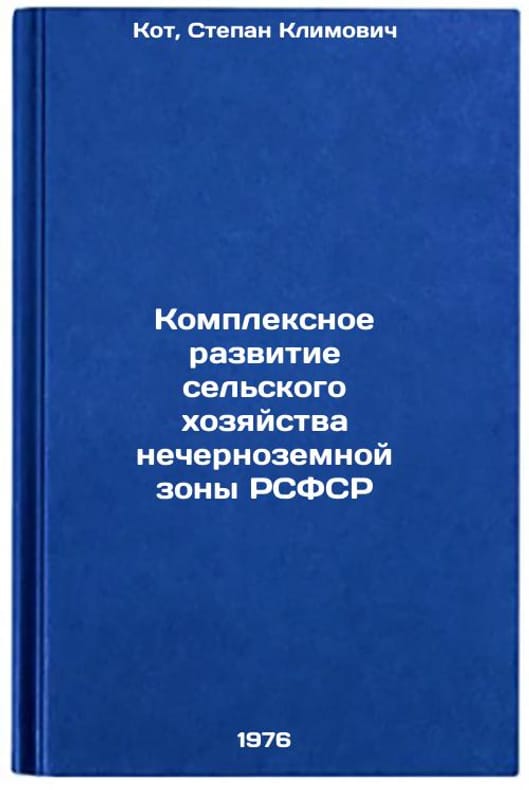 In Russian. Cat, Stepan Klimovich. Integrated Development of Agriculture in the Non-Black Earth Zone of the RSFSR. Moscow: VNIITEISH, 1976. Kompleksnoe razvitie sel'skogo khozyaystva nechernozemnoy zony RSFSR. In Russian /Integrated development of agriculture outside the Black Land zone of the RSFSR . All images are for identification of editions only. Several books of the same edition may be available. Please feel free to request photos of available books. SKU6989831