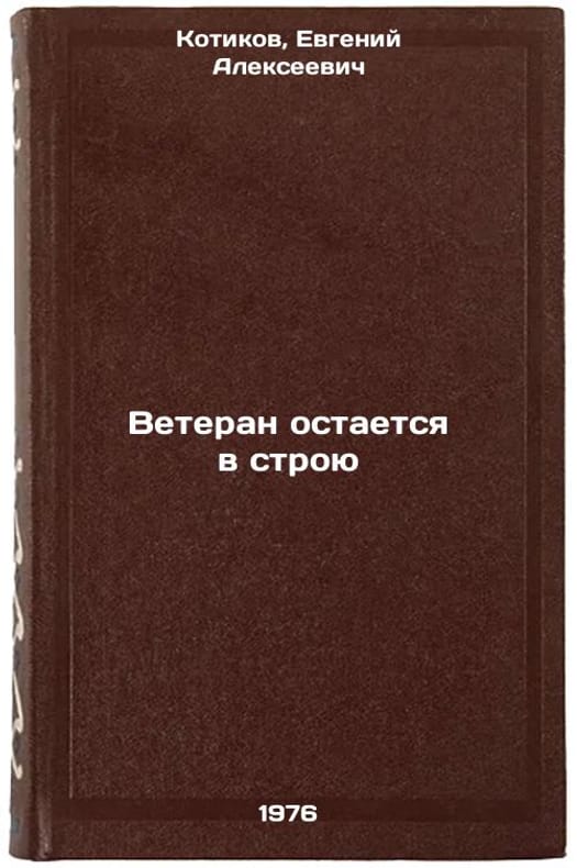 In Russian. Kotikov, Evgeniy Alekseevich. The veteran remains in service. Saransk: Mordov book, 1976. All images are for identification of editions only. Several books of the same edition may be available. Please feel free to request photos of available books. SKU6989883
