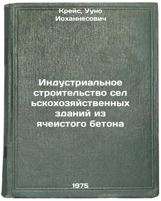In Russian. Kreis, Uuno Johannesovich. Industrial construction of agricultural buildings made of cellular concrete. Leningrad: Stroyizdat. Leningrad Division, 1975. Industrial'noe stroitel'stvo sel'skokhozyaystvennykh zdaniy iz yacheistogo betona. In Russian /Industrial construction of agricultural buildings made of cellular concrete. All images are for identification of editions only. Several books of the same edition may be available. Please feel free to request photos of available books. SKU6990646