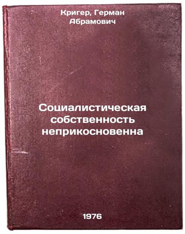 In Russian. Krieger, German Abramovich. Socialist property is inviolable. Moscow: Znanie, 1976. Sotsialisticheskaya sobstvennost' neprikosnovenna. In Russian /Socialist property is inviolable . All images are for identification of editions only. Several books of the same edition may be available. Please feel free to request photos of available books. SKU6990864