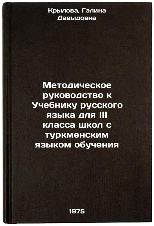 In Russian. Krylova, Galina Davydovna. Methodological Guide to the Russian Language Textbook for the third grade of schools with Turkmen as the language of instruction. Ashgabat: Turkmenistan, 1975. Metodicheskoe rukovodstvo k Uchebniku russkogo yazyka dlya III klassa shkol s turkmenskim yazykom obucheniya. In Russian /Methodological Guide to the Russian Language Textbook for the third grade of schools with Turkmen as the language of instruction. All images are for identification of editions only. Several books of the same edition may be available. Please feel free to request photos of available books. SKU6991171