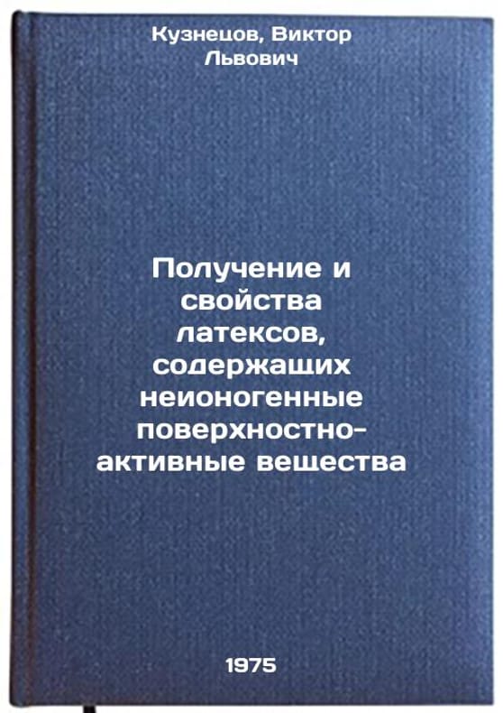In Russian. Kuznetsov, Viktor Lvovich. Production and properties of latex containing non-ionogenic surfactants. Moscow: TsNIITEneftekhim, 1975. Poluchenie i svoystva lateksov, soderzhashchikh neionogennye poverkhnostno-aktivnye veshchestva. In Russian /Formation and properties of latex containing non-ionogenic surfactants. All images are for identification of editions only. Several books of the same edition may be available. Please feel free to request photos of available books. SKU6991725