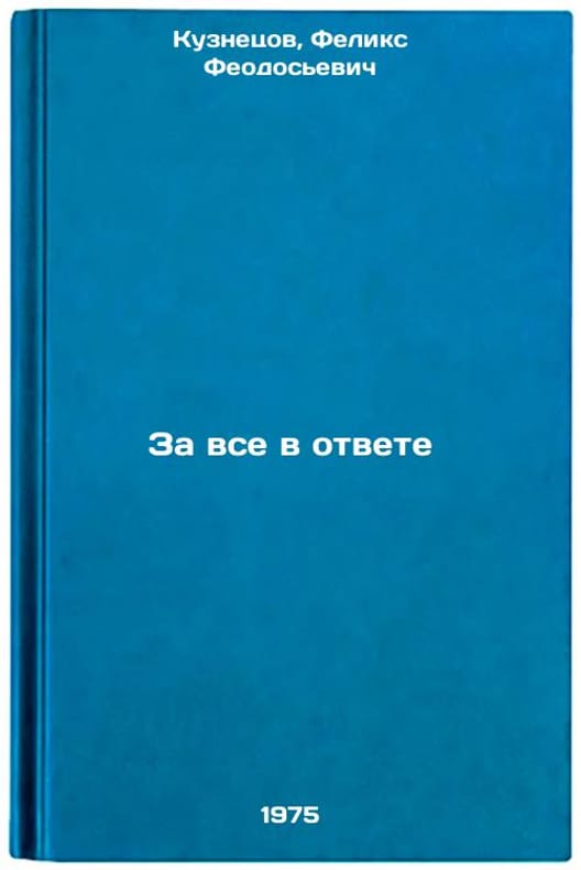In Russian. Kuznetsov, Felix Feodosievich. For everything is in charge. Moscow: Soviet writer, 1975. All images are for identification of editions only. Several books of the same edition may be available. Please feel free to request photos of available books. SKU6991817