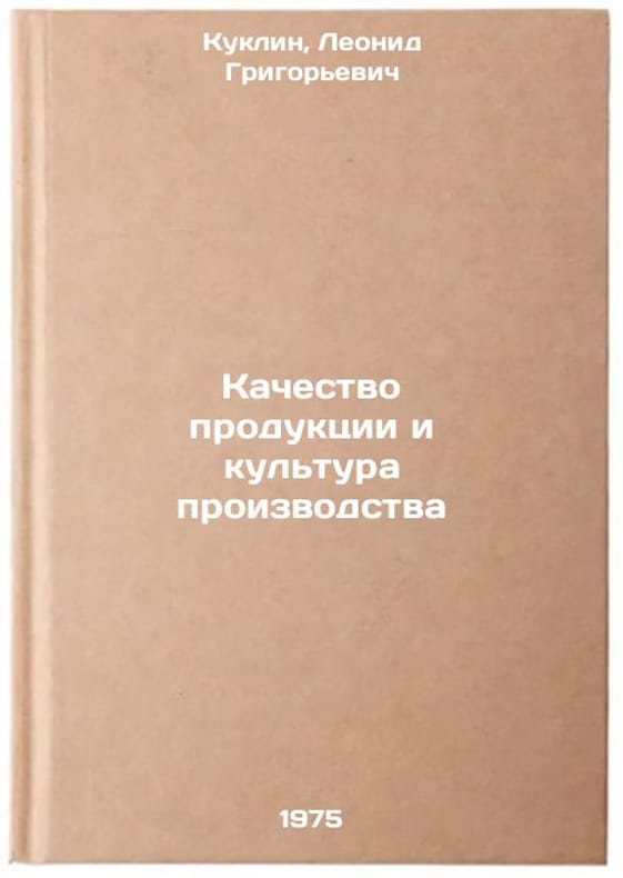 In Russian. Kuklin, Leonid Grigorievich. Product Quality and Production Culture. Moscow: Machine Building, 1971. Kachestvo produktsii i kul'tura proizvodstva. In Russian /Product Quality and Production Culture . All images are for identification of editions only. Several books of the same edition may be available. Please feel free to request photos of available books. SKU7423153