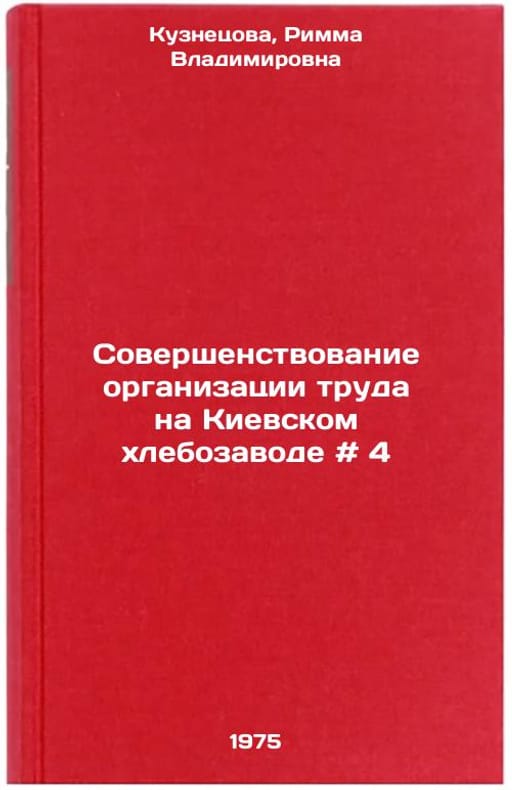 In Russian. Kuznetsova, Rimma Vladimirovna. Improvement of Labour Organization at the Kyiv Bakery # 4. Moscow: TsNIITEIpischprom, 1975. Sovershenstvovanie organizatsii truda na Kievskom khlebozavode # 4. In Russian /Improvement of Labour Organization at Kyiv Bakery # 4. All images are for identification of editions only. Several books of the same edition may be available. Please feel free to request photos of available books. SKU6992372
