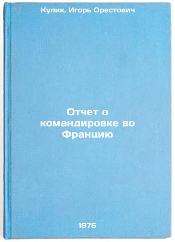 In Russian. Kulik, Igor Orestovich. Report on mission to France. Moscow: 1975. All images are for identification of editions only. Several books of the same edition may be available. Please feel free to request photos of available books. SKU6992639