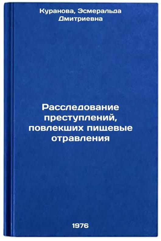 In Russian. Kuranova, Esmeralda Dmitrievna. Investigation of crimes involving food poisoning. Moscow: 1976. Rassledovanie prestupleniy, povlekshikh pishchevye otravleniya. In Russian /Investigation of food poisoning crimes . All images are for identification of editions only. Several books of the same edition may be available. Please feel free to request photos of available books. SKU6993060