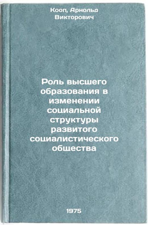 In Russian. Koop, Arnold Viktorovich. The Role of Higher Education in Changing the Social Structure of a Developed Socialist Society. Tartu: Tartu un-t, 1975. Rol' vysshego obrazovaniya v izmenenii sotsial'noy struktury razvitogo sotsialisticheskogo obshchestva. In Russian /The Role of Higher Education in Changing the Social Structure of a Developed Socialist Society. All images are for identification of editions only. Several books of the same edition may be available. Please feel free to request photos of available books. SKU6993817