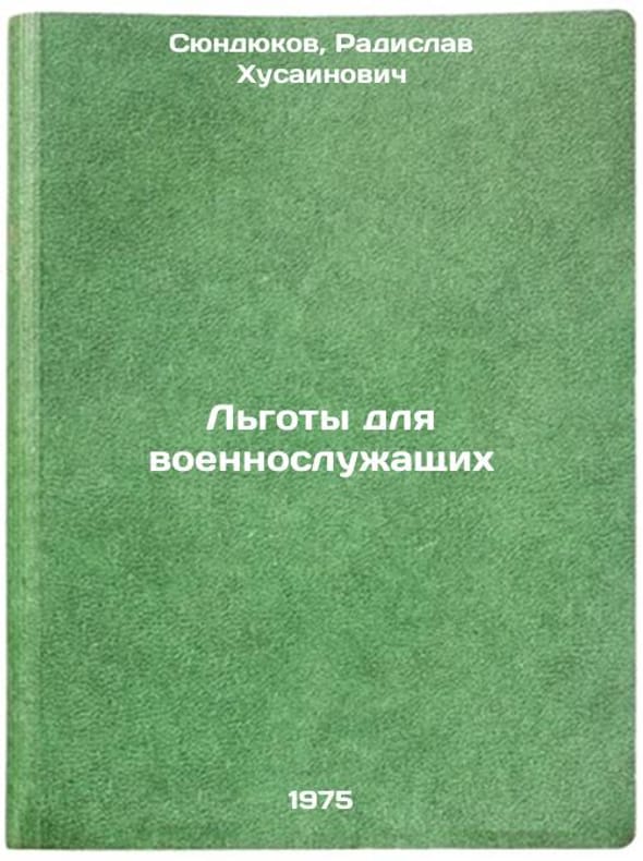 In Russian. Syundyukov, Radislav Khusainovich. Privileges for military personnel. Almaty: Kazakhstan, 1975. All images are for identification of editions only. Several books of the same edition may be available. Please feel free to request photos of available books. SKU6994875