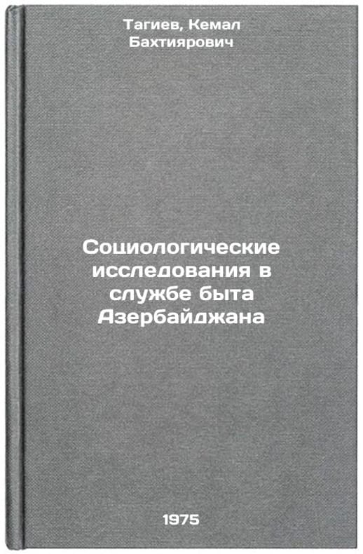 In Russian. Tagiev, Kemal Bakhtiyarovich. Sociological research in the household service of Azerbaijan. Baku: 1975. Sotsiologicheskie issledovaniya v sluzhbe byta Azerbaydzhana. In Russian /Sociological research in the household service of Azerbaijan. All images are for identification of editions only. Several books of the same edition may be available. Please feel free to request photos of available books. SKU6995138