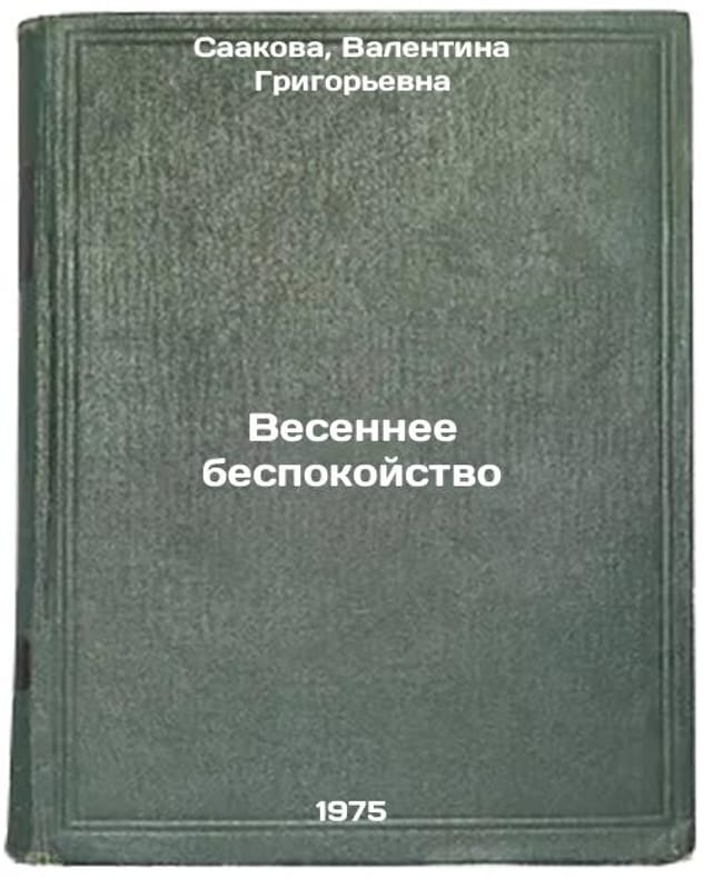 In Russian. Saakova, Valentina Grigorievna. Spring anxiety. Moscow: Pravda, 1975. All images are for identification of editions only. Several books of the same edition may be available. Please feel free to request photos of available books. SKU6995144