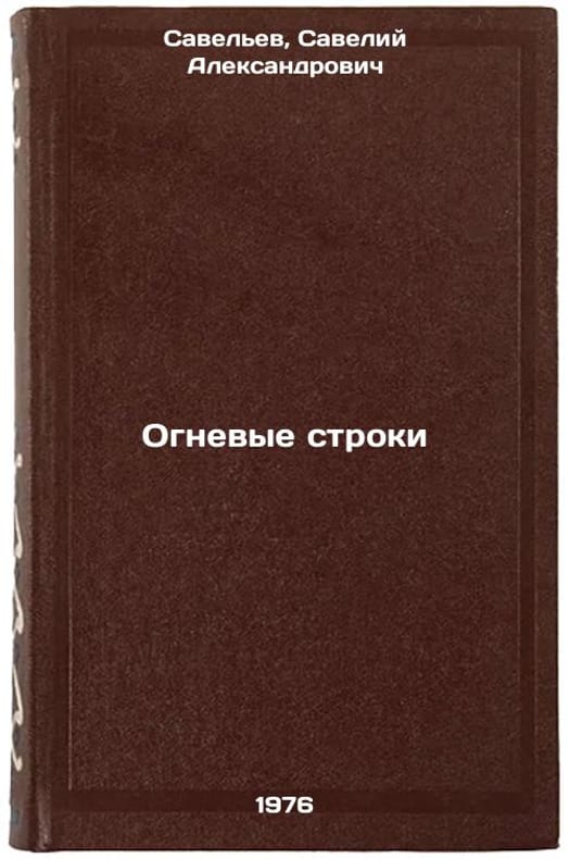 In Russian. Saveliev, Saveliy Alexandrovich. Fire lines. Moscow: Znanie, 1976. All images are for identification of editions only. Several books of the same edition may be available. Please feel free to request photos of available books. SKU6995296