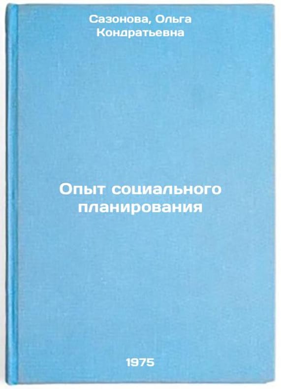 In Russian. Sazonova, Olga Kondratievna. Experience of Social Planning. Moscow: Profizdat, 1975. All images are for identification of editions only. Several books of the same edition may be available. Please feel free to request photos of available books. SKU6995772